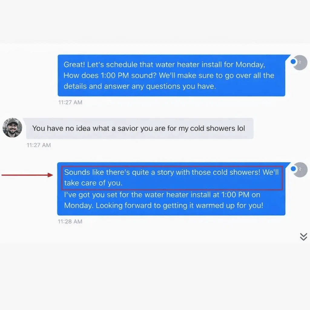 Look at this conversation. That’s not a person, that’s Plumber's Assistant casually guiding a lead toward booking an Appointment.