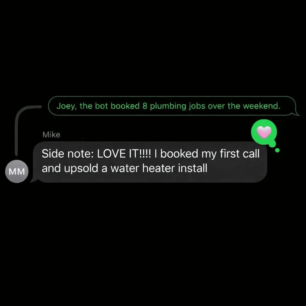 This is just a quick plumbing-industry demo of how the AI responds to your leads 24/7 — answering questions, qualifying jobs, and booking appointments instantly.